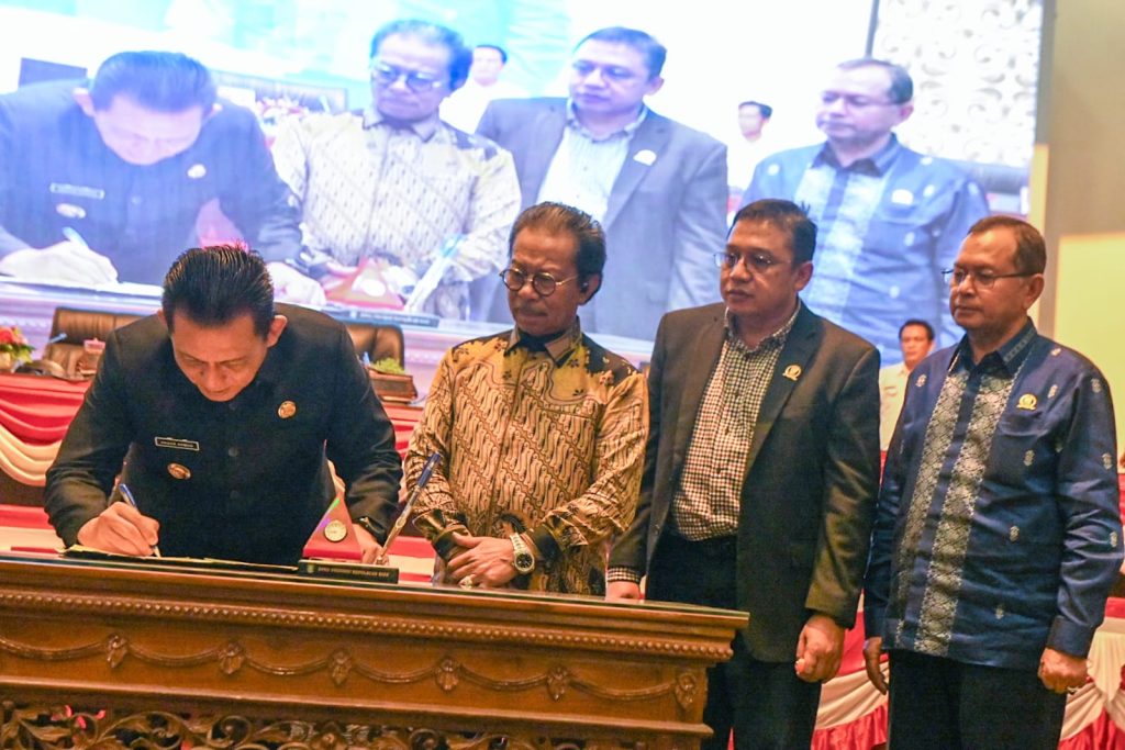 “Kami mengucapkan terima kasih dan penghargaan setinggi-tingginya atas kerja sama yang terjalin dengan baik selama proses pembahasan ranperda ini,” ujar Gubernur Ansar.