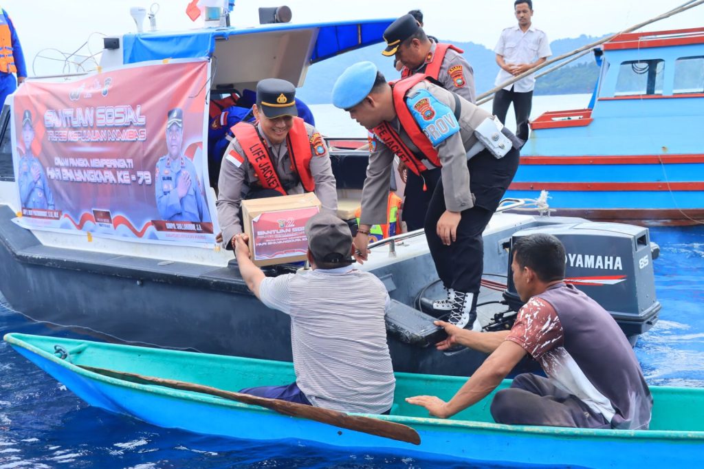 Anambas (KGK) – Dalam rangka menyambut Hari Ulang Tahun (HUT) Bhayangkara ke-79 tahun 2025, Polres Kepulauan Anambas kembali menyalurkan bantuan sosial kepada para nelayan yang sedang melaut menggunakan jongkong (Perahu Tradisional), Rabu (25/06/2025).