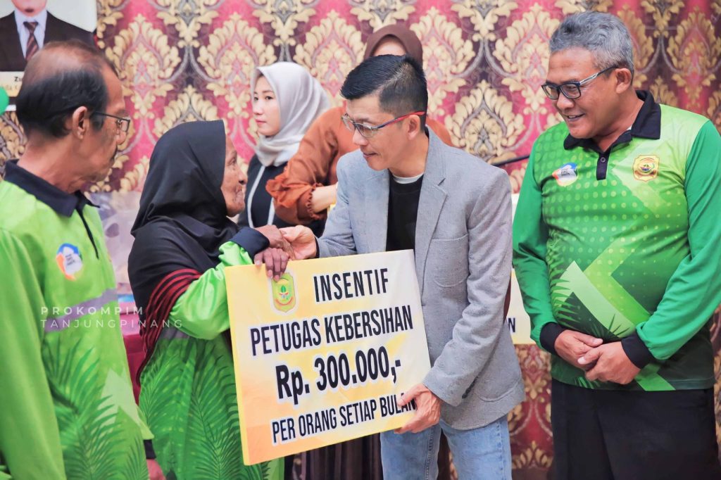 Penjabat Wali Kota Tanjungpinang, Hasan, S.Sos menyerahkan insentif bagi kepada petugas kebersihan lapangan.